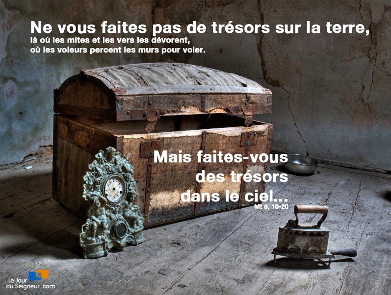 En ce temps-là, Jésus disait à ses disciples : « Ne vous faites pas de trésors sur la terre, là où les mites et les vers les dévorent, où les voleurs percent les murs pour voler.