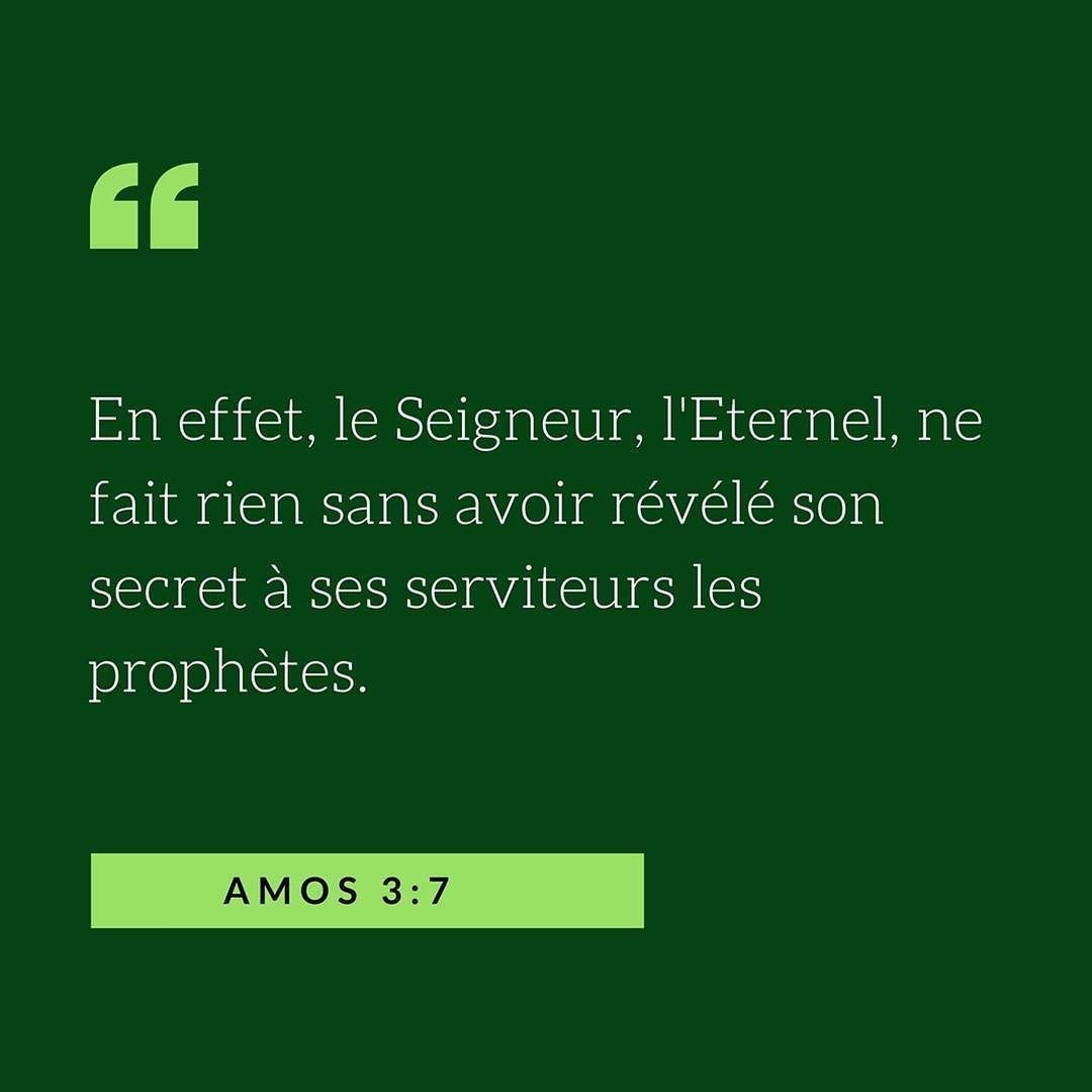 – Car le Seigneur Dieu ne fait rien sans en révéler le secret à ses serviteurs les prophètes.