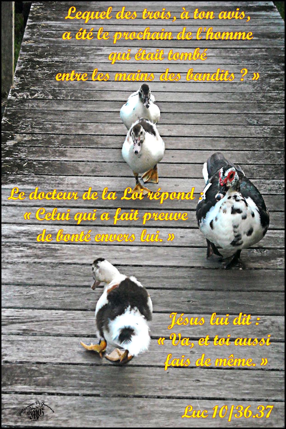 Le docteur de la Loi répondit : « Celui qui a fait preuve de pitié envers lui. » Jésus lui dit : « Va, et toi aussi, fais de même. »