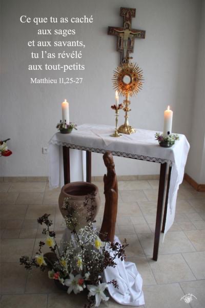 En ce temps-là, Jésus prit la parole et dit : « Père, Seigneur du ciel et de la terre, je proclame ta louange : ce que tu as caché aux sages et aux savants, tu l’as révélé aux tout-petits.