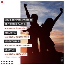 nous sommes pourchassés, mais non pas abandonnés ; terrassés, mais non pas anéantis.