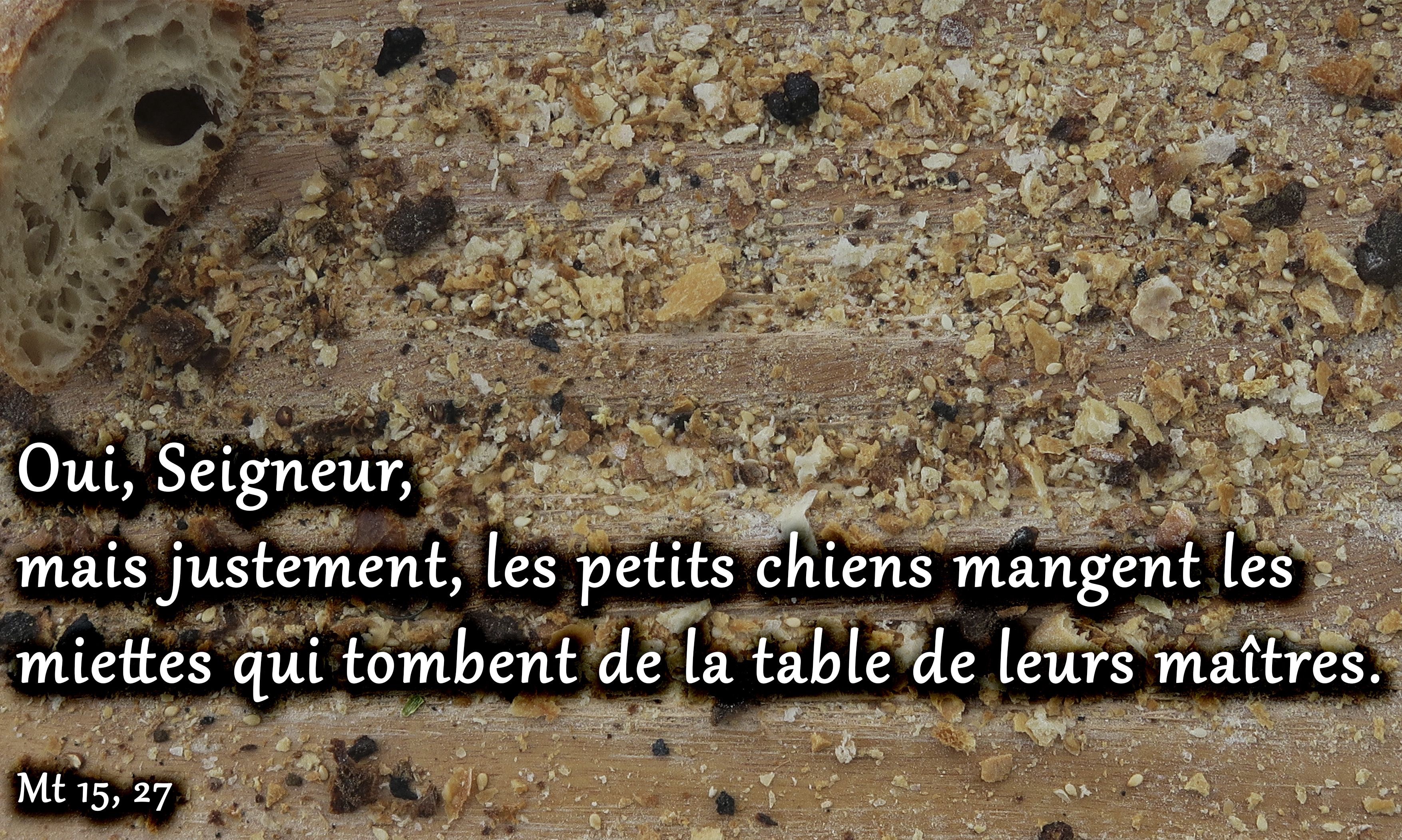 Elle reprit : « Oui, Seigneur ; mais justement, les petits chiens mangent les miettes qui tombent de la table de leurs maîtres. »