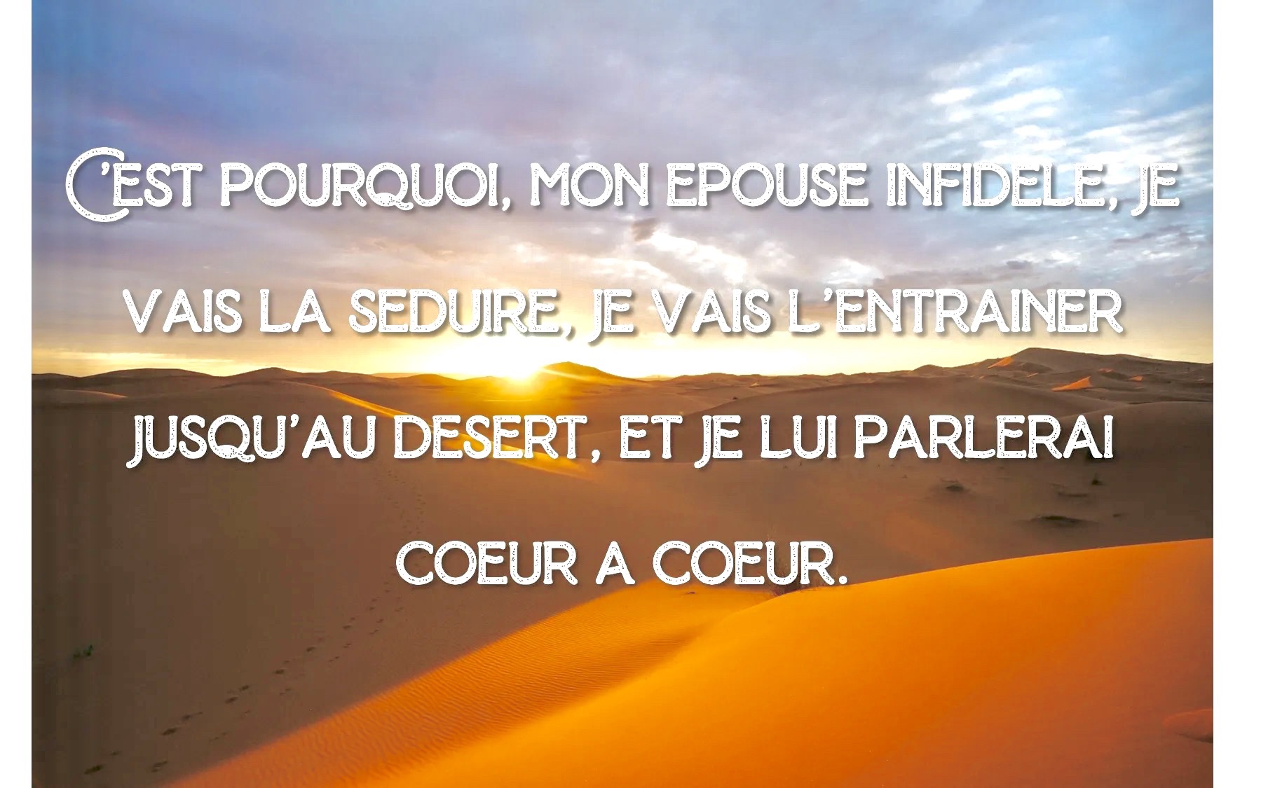 Mon épouse infidèle, je vais l’entraîner jusqu’au désert, et je lui parlerai cœur à cœur.