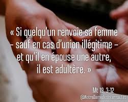 Or je vous le dis : si quelqu’un renvoie sa femme – sauf en cas d’union illégitime – et qu’il en épouse une autre, il est adultère. »