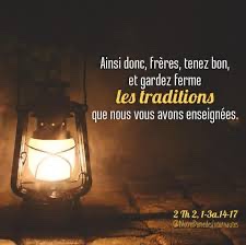 Ainsi donc, frères, tenez bon, et gardez ferme les traditions que nous vous avons enseignées, soit de vive voix, soit par lettre.