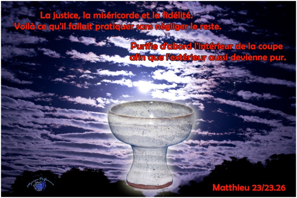 Pharisien aveugle, purifie d’abord l’intérieur de la coupe, afin que l’extérieur aussi devienne pur.