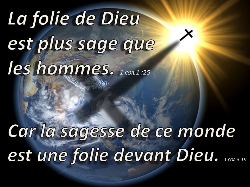 Car la sagesse de ce monde est folie devant Dieu. Il est écrit en effet : ‘C’est lui qui prend les sages au piège de leur propre habileté.’