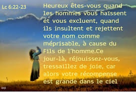 Heureux êtes-vous quand les hommes vous haïssent et vous excluent, quand ils insultent et rejettent votre nom comme méprisable, à cause du Fils de l’homme.
