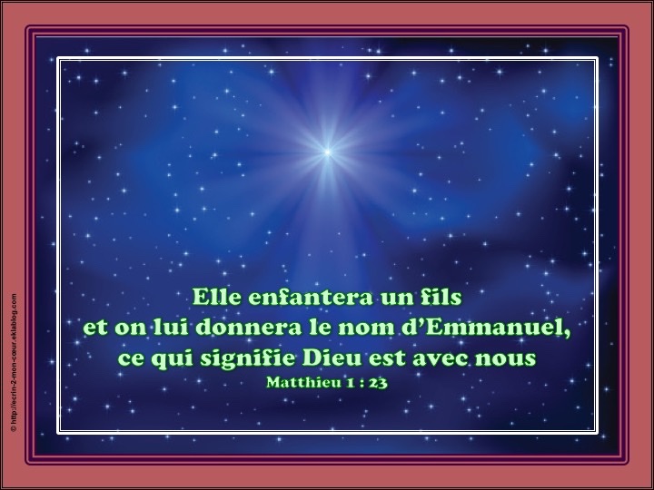 ‘Voici que la Vierge concevra, et elle enfantera un fils ; on lui donnera le nom d’Emmanuel’, qui se traduit : « Dieu-avec-nous »