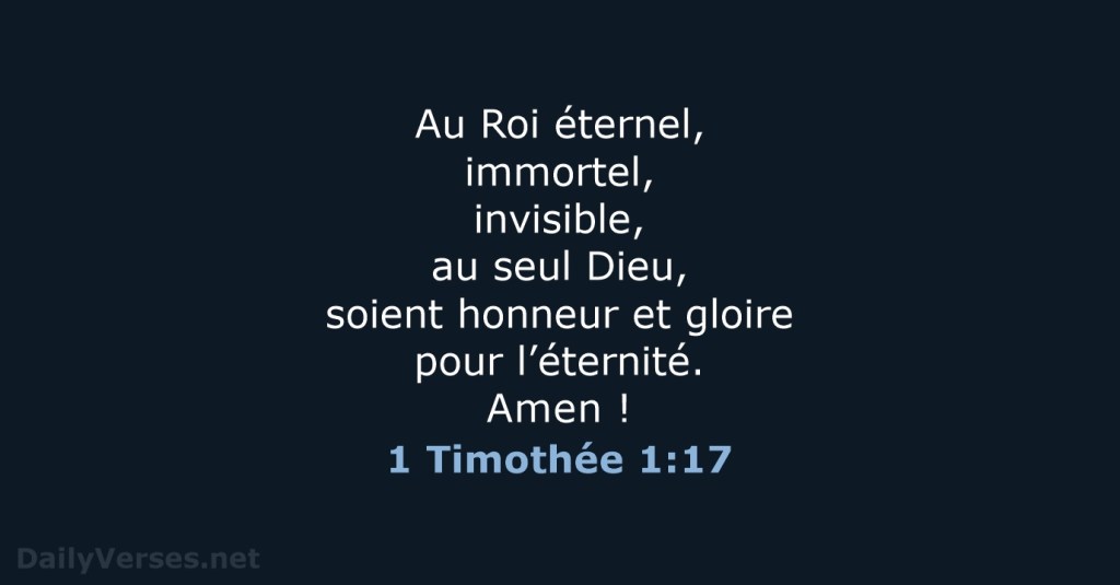 Au roi des siècles, Dieu immortel, invisible et unique, honneur et gloire pour les siècles des siècles ! Amen.