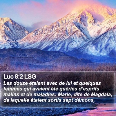 ainsi que des femmes qui avaient été guéries de maladies et d’esprits mauvais : Marie, appelée Madeleine, de laquelle étaient sortis sept démons,