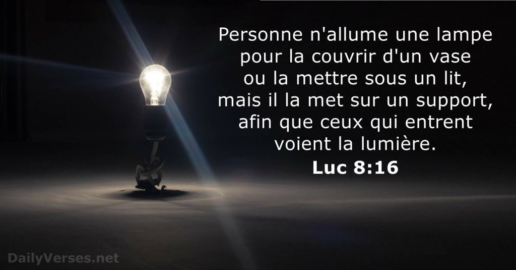 En ce temps-là, Jésus disait aux foules : « Personne, après avoir allumé une lampe, ne la couvre d’un vase ou ne la met sous le lit ; on la met sur le lampadaire pour que ceux qui entrent voient la lumière.