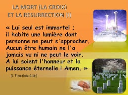 lui seul possède l’immortalité, habite une lumière inaccessible ; aucun homme ne l’a jamais vu, et nul ne peut le voir. À lui, honneur et puissance éternelle. Amen.