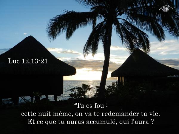 Mais Dieu lui dit : “Tu es fou : cette nuit même, on va te redemander ta vie. Et ce que tu auras accumulé, qui l’aura ?”