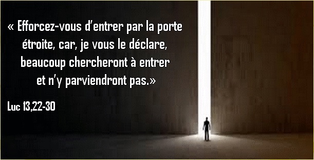 « Efforcez-vous d’entrer par la porte étroite, car, je vous le déclare, beaucoup chercheront à entrer et n’y parviendront pas.