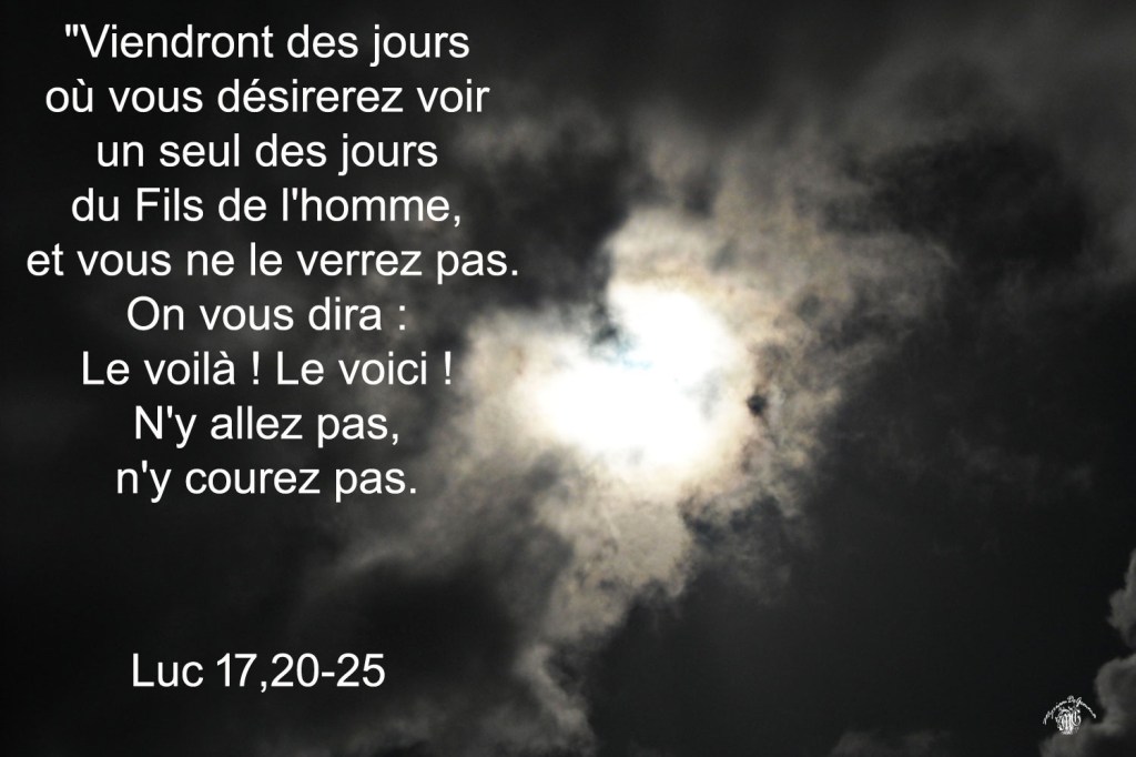 En effet, comme l’éclair qui jaillit illumine l’horizon d’un bout à l’autre, ainsi le Fils de l’homme, quand son jour sera là.