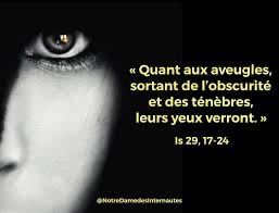 Les sourds, en ce jour-là, entendront les paroles du livre. Quant aux aveugles, sortant de l’obscurité et des ténèbres, leurs yeux verront.