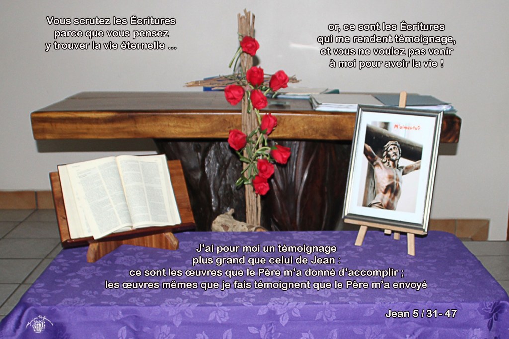 Mais j’ai pour moi un témoignage plus grand que celui de Jean : ce sont les œuvres que le Père m’a donné d’accomplir ; les œuvres mêmes que je fais témoignent que le Père m’a envoyé. »