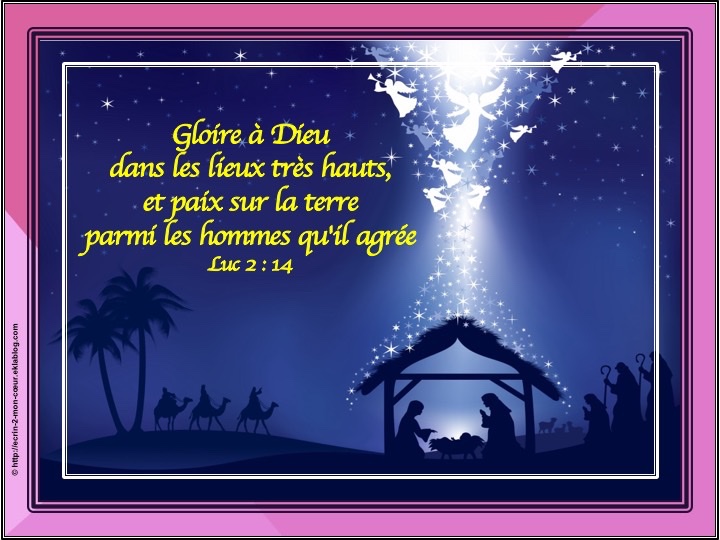 Et soudain, il y eut avec l’ange une troupe céleste innombrable, qui louait Dieu en disant :