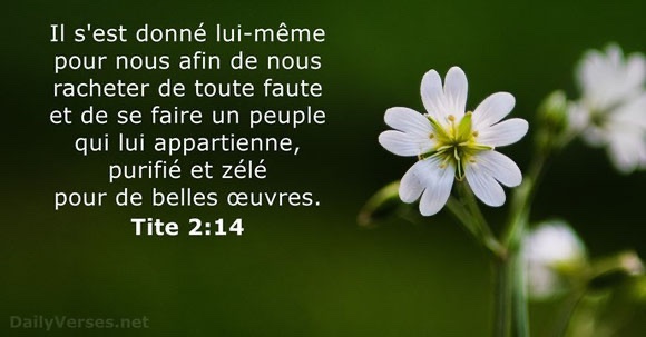 Car sil s’est donné pour nous afin de nous racheter de toutes nos fautes, et de nous purifier pour faire de nous son peuple, un peuple ardent à faire le bien.