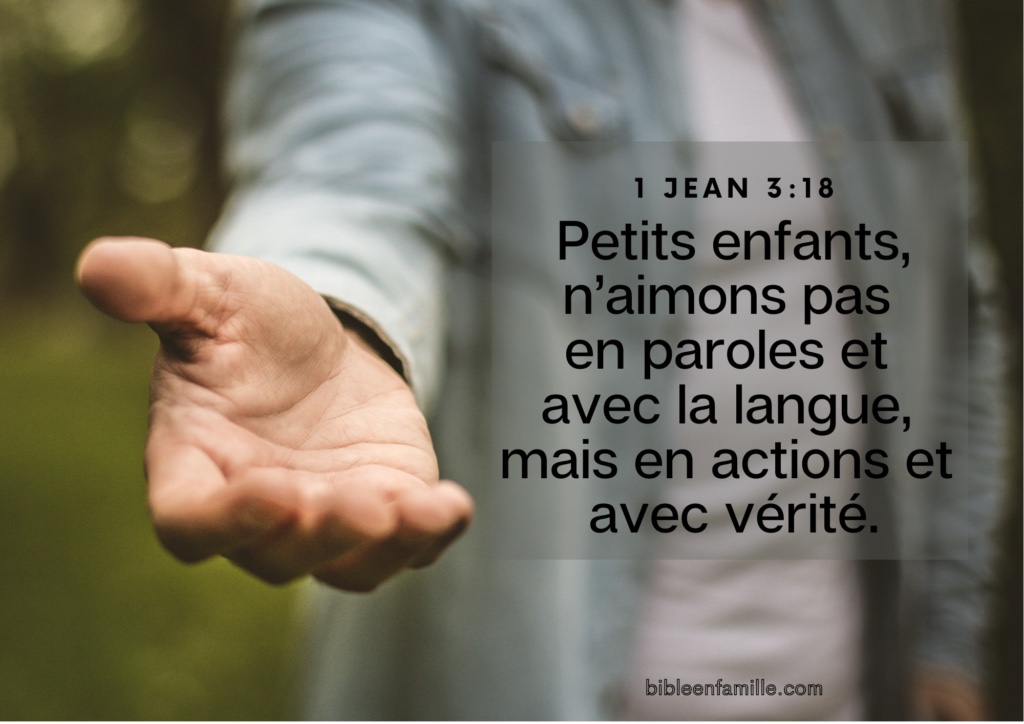 Petits enfants, n’aimons pas en paroles ni par des discours, mais par des actes et en vérité.