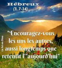 Au contraire, encouragez-vous les uns les autres jour après jour, aussi longtemps que retentit l’« aujourd’hui » de ce psaume, afin que personne parmi vous ne s’endurcisse en se laissant tromper par le péché.