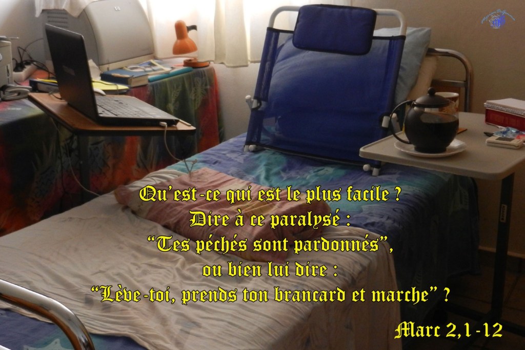 Qu’est-ce qui est le plus facile ? Dire à ce paralysé : “Tes péchés sont pardonnés”, ou bien lui dire : “Lève-toi, prends ton brancard et marche” ?