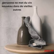 Ou encore, personne ne met du vin nouveau dans de vieilles outres ; car alors, le vin fera éclater les outres, et l’on perd à la fois le vin et les outres. À vin nouveau, outres neuves. »