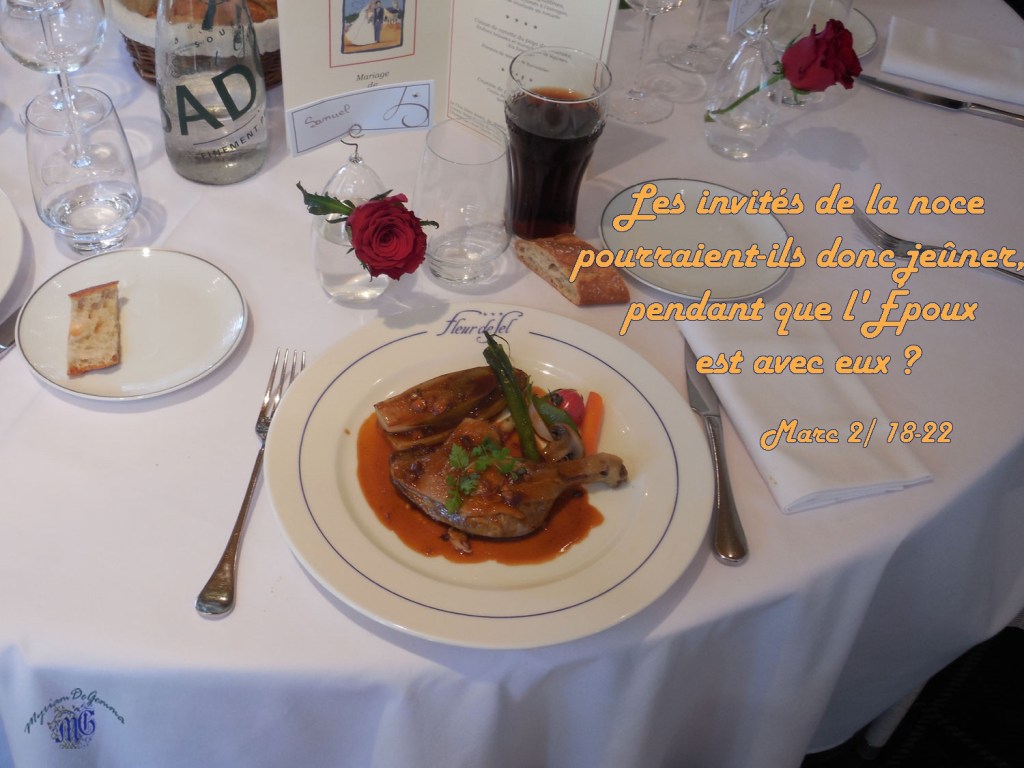 Jésus leur dit : « Les invités de la noce pourraient-ils jeûner, pendant que l’Époux est avec eux ? Tant qu’ils ont l’Époux avec eux, ils ne peuvent pas jeûner.
