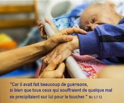 Car il avait fait beaucoup de guérisons, si bien que tous ceux qui souffraient de quelque mal se précipitaient sur lui pour le toucher.