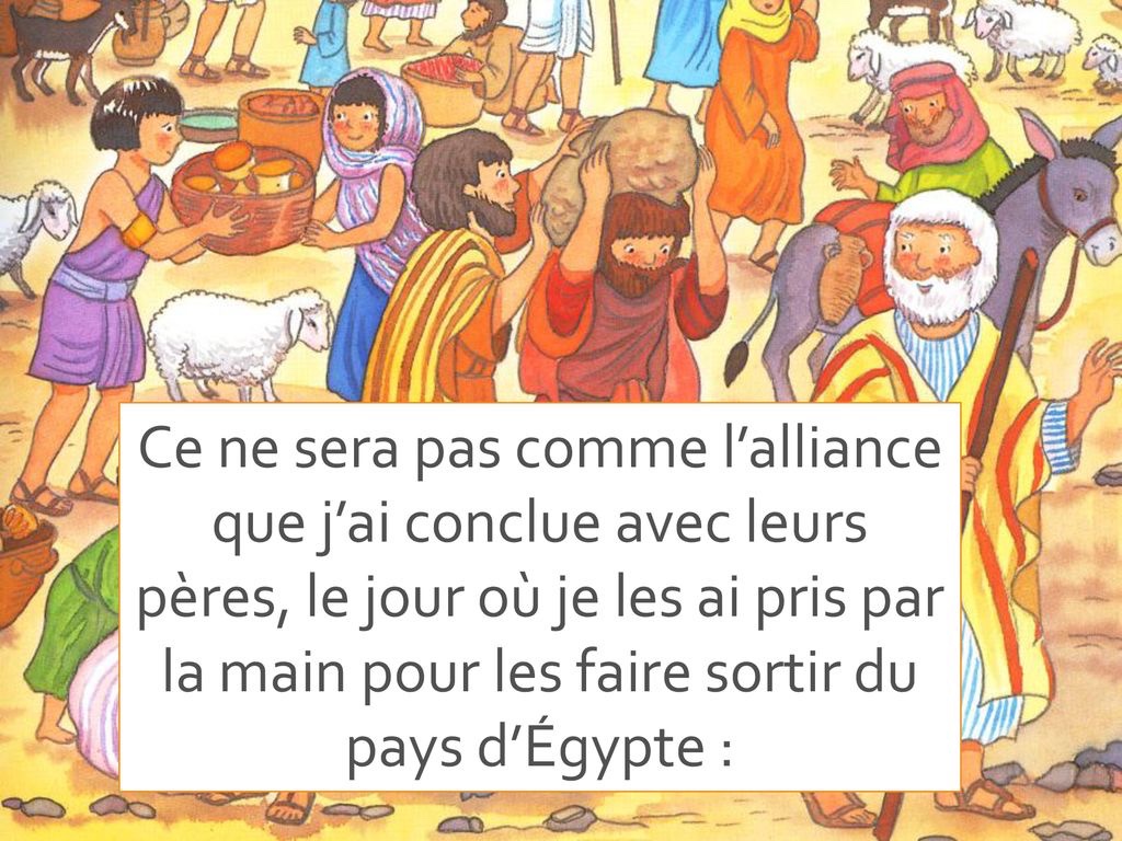 Ce ne sera pas comme l’Alliance que j’ai faite avec leurs pères, le jour où je les ai pris par la main pour les faire sortir du pays d’Égypte : eux ne sont pas restés dans mon alliance ; alors moi, je les ai délaissés, dit le Seigneur.