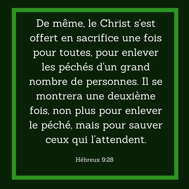 ainsi le Christ s’est-il offert une seule fois pour enlever les péchés de la multitude ; il apparaîtra une seconde fois, non plus à cause du péché, mais pour le salut de ceux qui l’attendent.