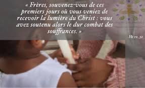 Frères, souvenez-vous de ces premiers jours où vous veniez de recevoir la lumière du Christ : vous avez soutenu alors le dur combat des souffrances,