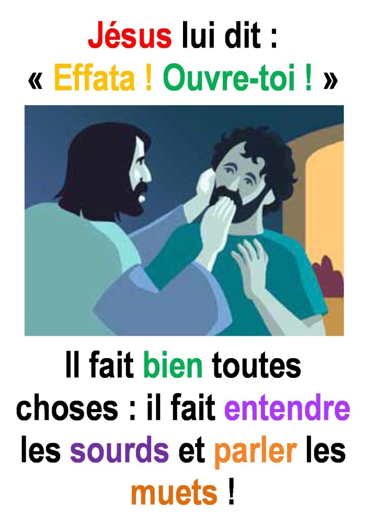Puis, les yeux levés au ciel, il soupira et lui dit : « Effata ! », c’est-à-dire : « Ouvre-toi ! »
