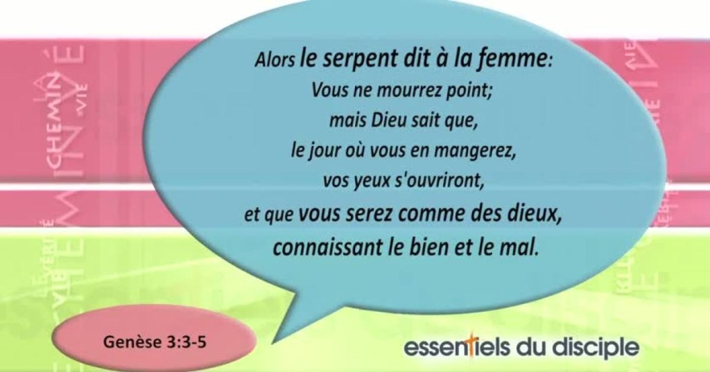 Mais, pour le fruit de l’arbre qui est au milieu du jardin, Dieu a dit : “Vous n’en mangerez pas, vous n’y toucherez pas, sinon vous mourrez.” »