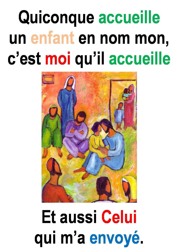 « Quiconque accueille en mon nom un enfant comme celui-ci, c’est moi qu’il accueille. Et celui qui m’accueille, ce n’est pas moi qu’il accueille, mais Celui qui m’a envoyé. »