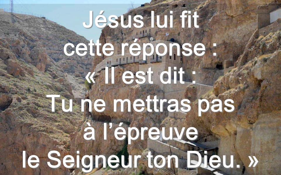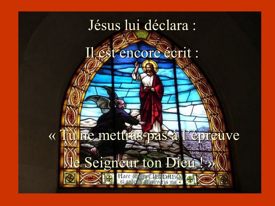 Jésus lui déclara : « Il est encore écrit : ‘Tu ne mettras pas à l’épreuve le Seigneur ton Dieu.’ »