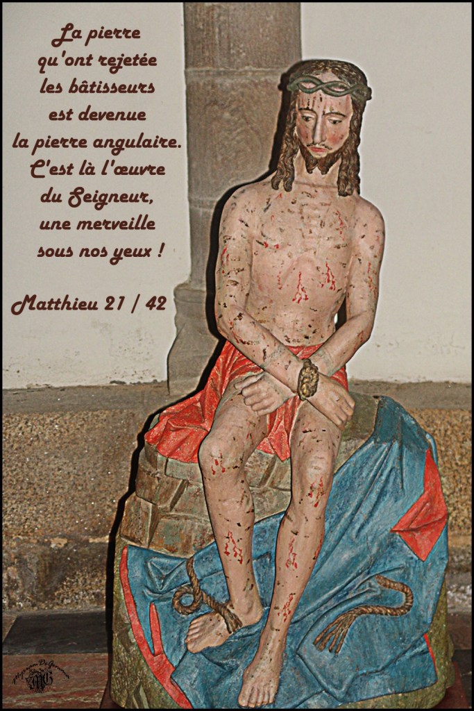 Jésus leur dit : « N’avez-vous jamais lu dans les Écritures : ‘La pierre qu’ont rejetée les bâtisseurs est devenue la pierre d’angle : c’est là l’œuvre du Seigneur, la merveille devant nos yeux !’