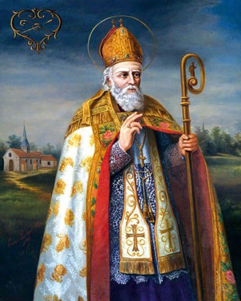 Par sa seule prière : il remit en santé un hydropique désespéré des médecins ; un aveugle qui avait perdu la vue depuis huit ans, la recouvra aussitôt qu’il se fut mis en oraison pour lui ; une fille possédée du malin esprit fut délivrée en touchant avec foi le bord de son habit. Deux jeunes garçons possédés aussi du démon en furent garantis en usant d’un aliment que le saint avait béni. Il guérit encore par la prière et en la présence du roi Childebert plusieurs fébricitants et d’autres malades ; par le seul signe de la Croix, il éteignit un grand incendie qui s’était allumé dans Paris. Par ce même signe redoutable, il détourna de sa demeure et de toute la campagne voisine un horrible tourbillon qui ravageait les champs d’alentour.