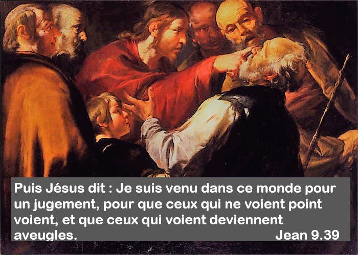 Jésus dit alors : « Je suis venu en ce monde pour rendre un jugement : que ceux qui ne voient pas puissent voir, et que ceux qui voient deviennent aveugles. »