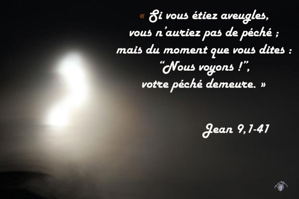 Jésus leur répondit : « Si vous étiez aveugles, vous n’auriez pas de péché ; mais du moment que vous dites : “Nous voyons !”, votre péché demeure. »