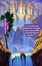 En ces jours-là, au cours d’une vision reçue du Seigneur, l’homme me fit revenir à l’entrée de la Maison, et voici : sous le seuil de la Maison, de l’eau jaillissait vers l’orient, puisque la façade de la Maison était du côté de l’orient. L’eau descendait de dessous le côté droit de la Maison, au sud de l’autel.