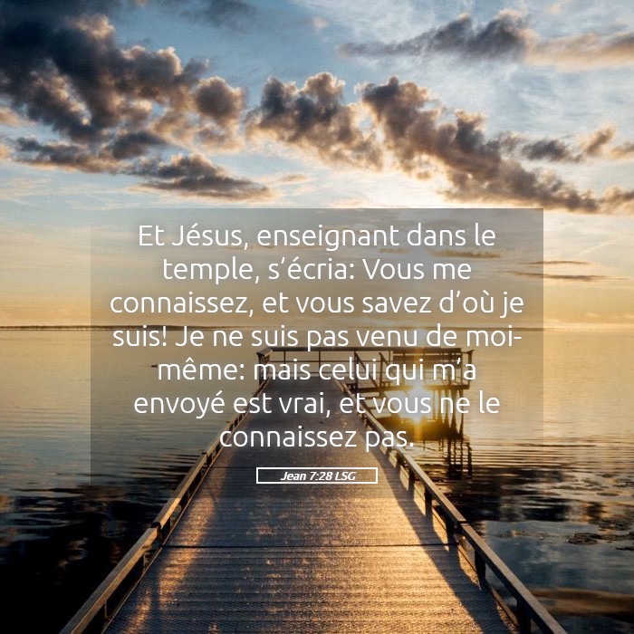 Jésus, qui enseignait dans le Temple, s’écria : « Vous me connaissez ? Et vous savez d’où je suis ? Je ne suis pas venu de moi-même : mais il est véridique, Celui qui m’a envoyé, lui que vous ne connaissez pas.