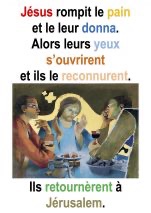 À leur tour, ils racontaient ce qui s’était passé sur la route, et comment le Seigneur s’était fait reconnaître par eux à la fraction du pain.