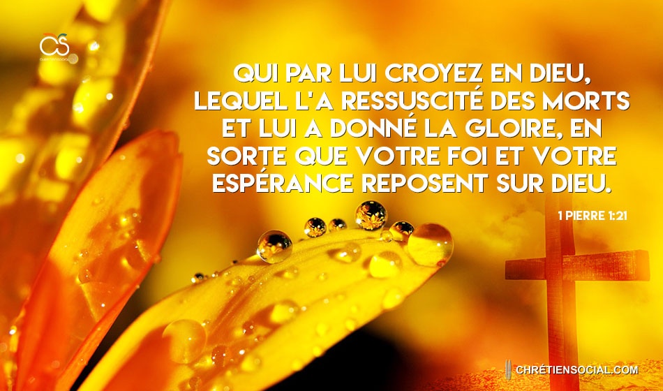 C’est bien par lui que vous croyez en Dieu, qui l’a ressuscité d’entre les morts et qui lui a donné la gloire ; ainsi vous mettez votre foi et votre espérance en Dieu.