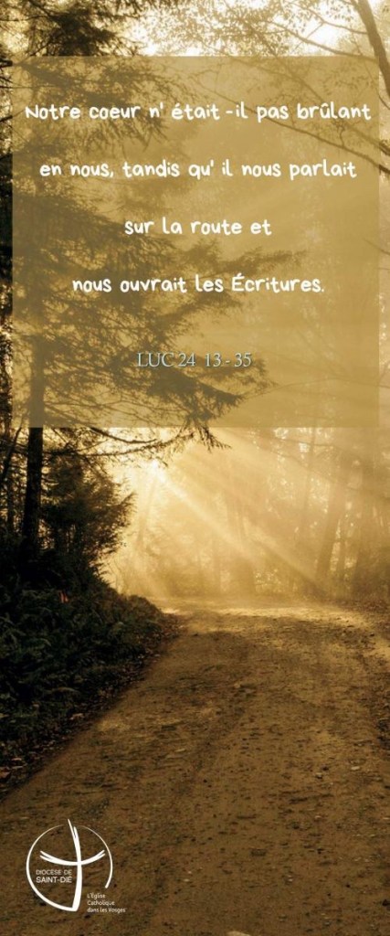 Ils se dirent l’un à l’autre : « Notre cœur n’était-il pas brûlant en nous, tandis qu’il nous parlait sur la route et nous ouvrait les Écritures ? »