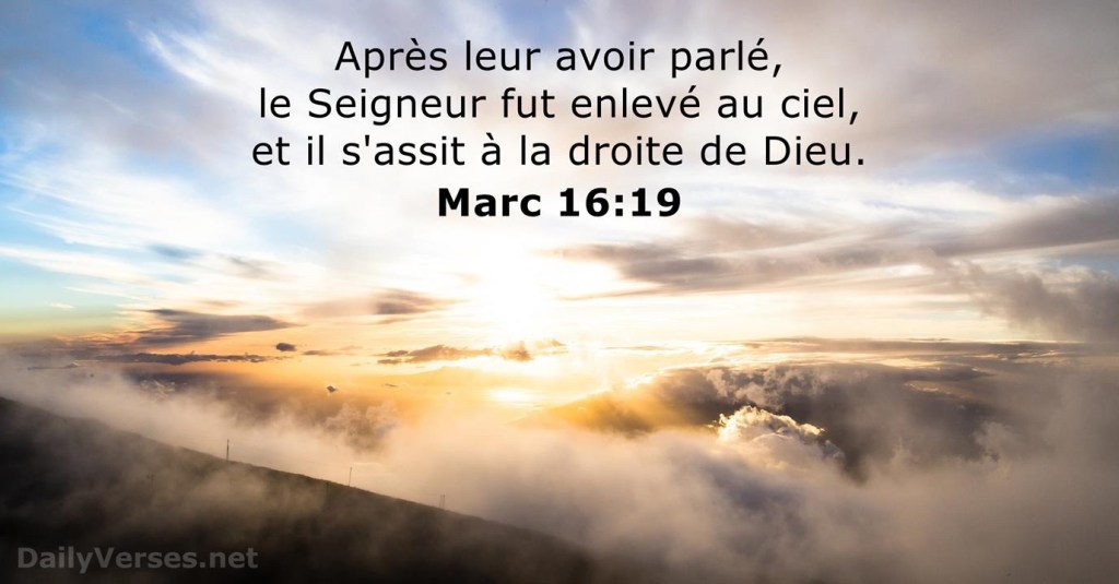 Le Seigneur Jésus, après leur avoir parlé, fut enlevé au ciel et s’assit à la droite de Dieu.