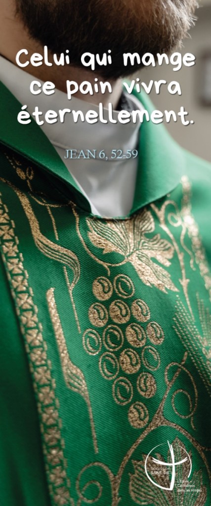 Tel est le pain qui est descendu du ciel : il n’est pas comme celui que les pères ont mangé. Eux, ils sont morts ; celui qui mange ce pain vivra éternellement. »