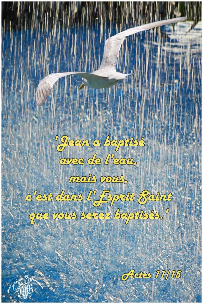 Alors je me suis rappelé la parole que le Seigneur avait dite : “Jean a baptisé avec l’eau, mais vous, c’est dans l’Esprit Saint que vous serez baptisés.”