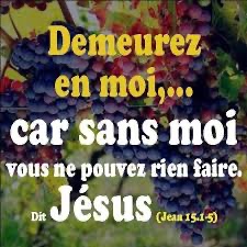 Demeurez en moi, comme moi en vous. De même que le sarment ne peut pas porter de fruit par lui-même s’il ne demeure pas sur la vigne, de même vous non plus, si vous ne demeurez pas en moi.